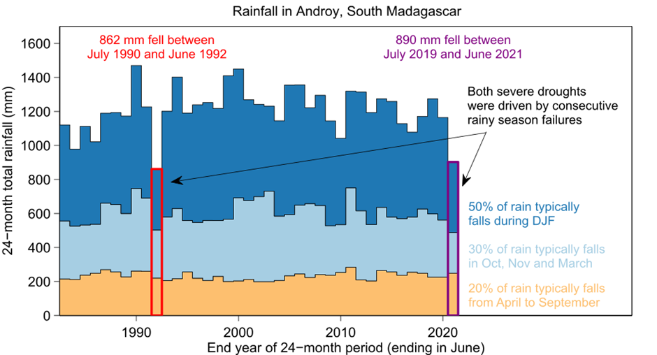 In fact, drought in southern Madagascar was not unknown in the past. A group of scientists and observers working for World Weather Attribution recently published their findings. As can be seen, a drought in 1992 was actually worse. Recent rains have marginally improved the current situation.
