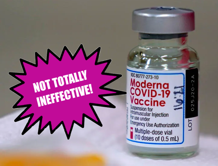 I’d make that Not proven to be totally ineffective. And add some of the usual investment warning weasel wording: Effects aren’t guaranteed to be wholly positive. You may get sick or remain healthy regardless of them or because of them. This vaccination comes with absolutely no express or implied warranty, including, but not limited to, implied warranty of fitness for any particular purpose. In no event shall the manufacturer be liable for any direct, indirect, incidental, special, exemplary or consequential damages.