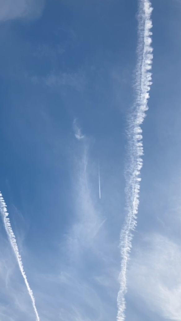 I live in a sunny area (not UK), about 30 miles from a large airport and under the Europe-South America flight path. Having been alerted to the possibility of “Chem Trails” I started observing the trails of high altitude aircraft. Con Trails from high altitude aircraft disappear completely within 20 / 30 seconds, very occasionally lasting a bit longer. What are called “Chem Trails” last much longer, being visible for 10 to 15 minutes or more as they slowly spread across the sky. They then seem to form a veil as they merge with other trails They are never isolated and are set out in parallel lines covering about 50% of the visible sky and linger for hours. They run parallel to the flight path of commercial aircraft.
