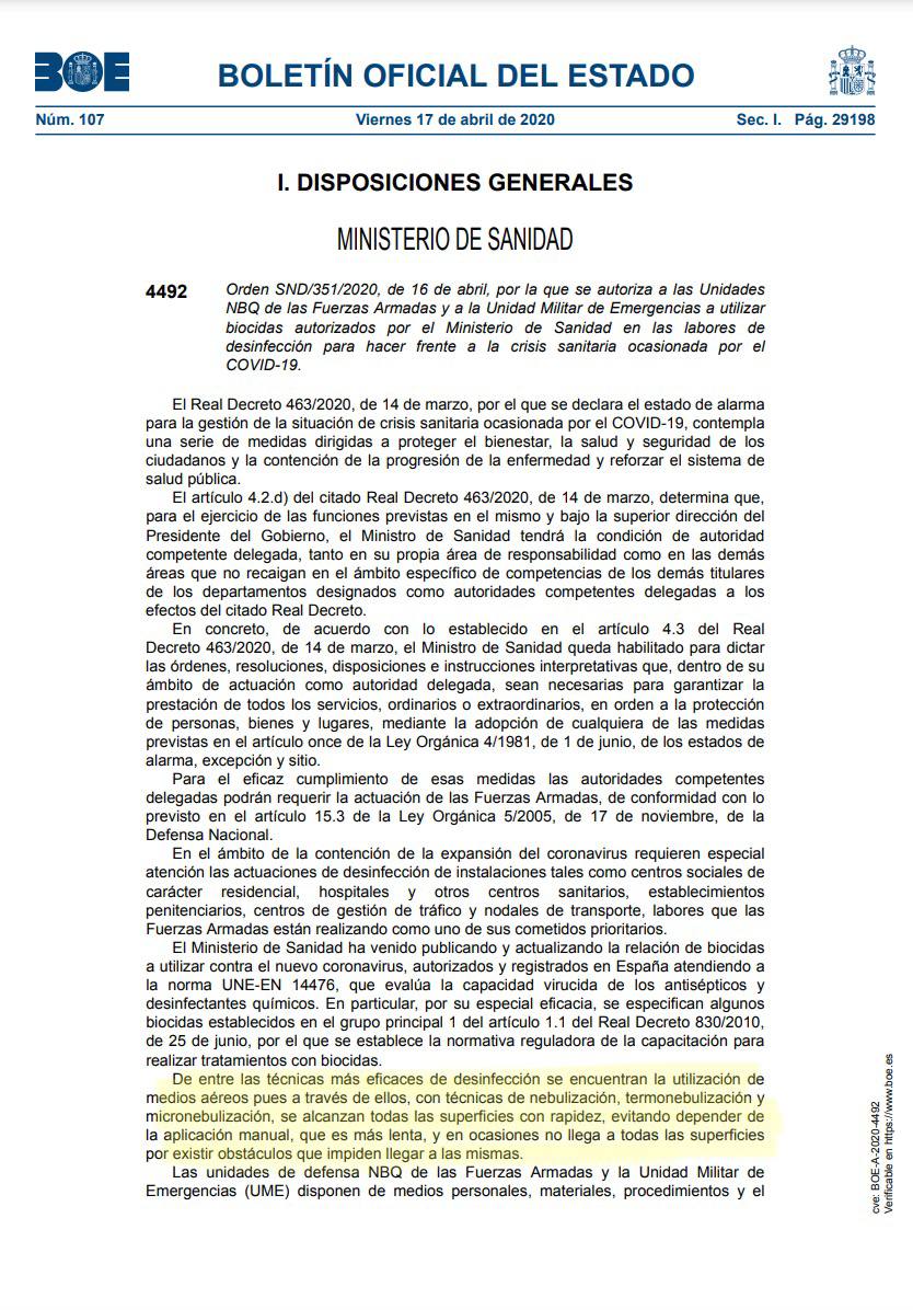 The Spanish government conceded some 5 years ago that they engage in this spraying as part of a “Geo Engineering” program to “help the farmers”. This can be seen in the following “Buletin” from the ministry of health.