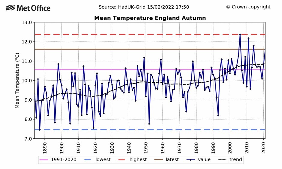 Well again, whatever is causing wasps to raid picnics a little longer, it does not seem to be any extra autumnal warming. Another 20-year ‘pause’ is obvious from the actual temperature readings.