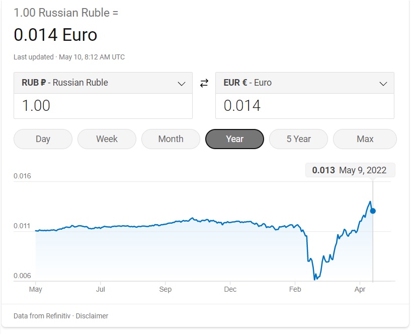 Odd this, the rouble is at a 12 month high! Again, not what you’d expect if you listened to the BBC.
