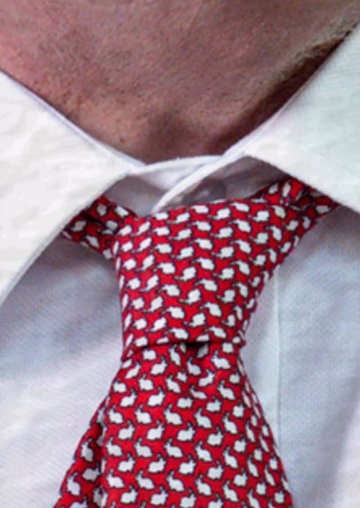 Following the White Rabbit brings Neo to the truth. This white rabbit tie could be seen as mocking the nation in that they are kept in a ‘Matrix’ of deception. People are still in fear of catching ‘The Virus’, to this day.