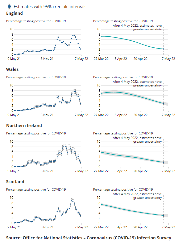 Today’s estimate for England is the lowest since the week ending December 16th, when 1.2m people were also estimated to have been infected. At that point, the Omicron strain was just starting to take off and in the following weeks there were mounting calls to follow some EU countries in enforcing another lockdown.