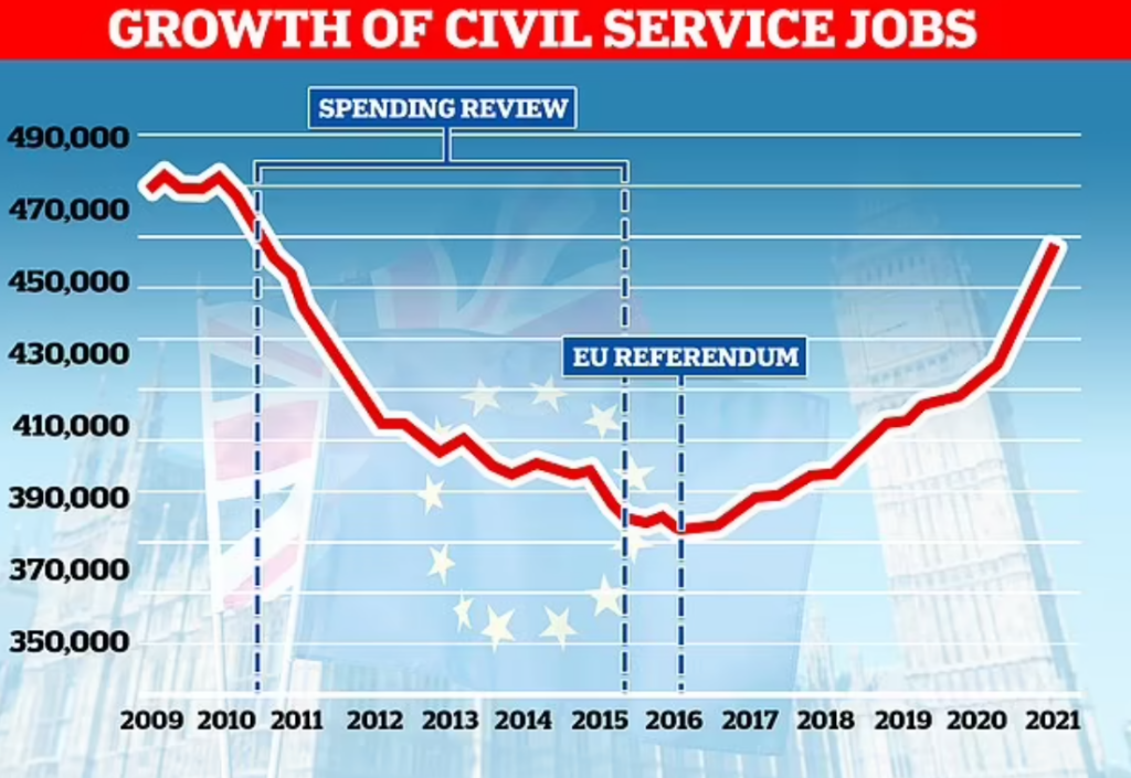 It’s not mentioned in the article, but most of the 90k extra civil servants were taken on to sort out a) Brexit and b) the pandemic.