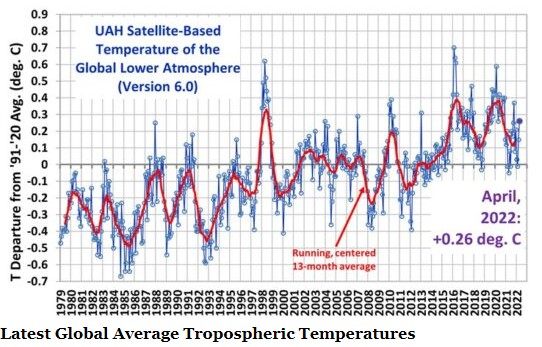 As the Daily Sceptic has reported, bad weather is doing the brunt of the propaganda lifting these days. Global warming ran out of steam about two decades ago, although the phrase is still a constant incantation. Statistics are cherry picked and temperature databases are remodelled to supply extra heating. The best is made out of an increasingly poor hand, none more so than last month at DWD, the German national weather centre. In a press release, April 2022 was described as “somewhat too warm”. For this the DWD went back to the archives and said April was 0.4°C warmer than the mean for 1960-90. For the more relevant 1991-2020 period, however, there was said to be a 1.2°C “deviation”, this being green activist-speak for colder.