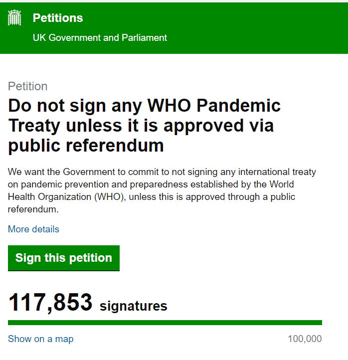 Sign the parliamentary petition against the latest moves by the WHO here – now at over 121,000 signatures.