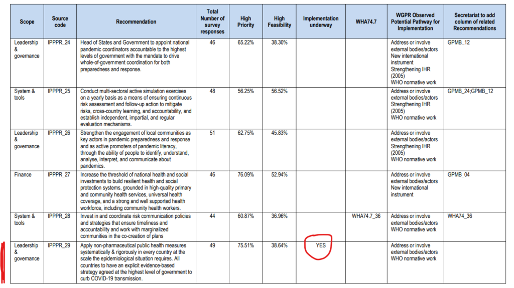 Worse, the report says this recommendation will be incorporated into the WHO’s “normative work”, meaning it will be part of official WHO guidance to states in responding to a pandemic. Worse still, it says it’s already being implemented – it doesn’t need a treaty or the agreement of member states to do this, it’s already happening.