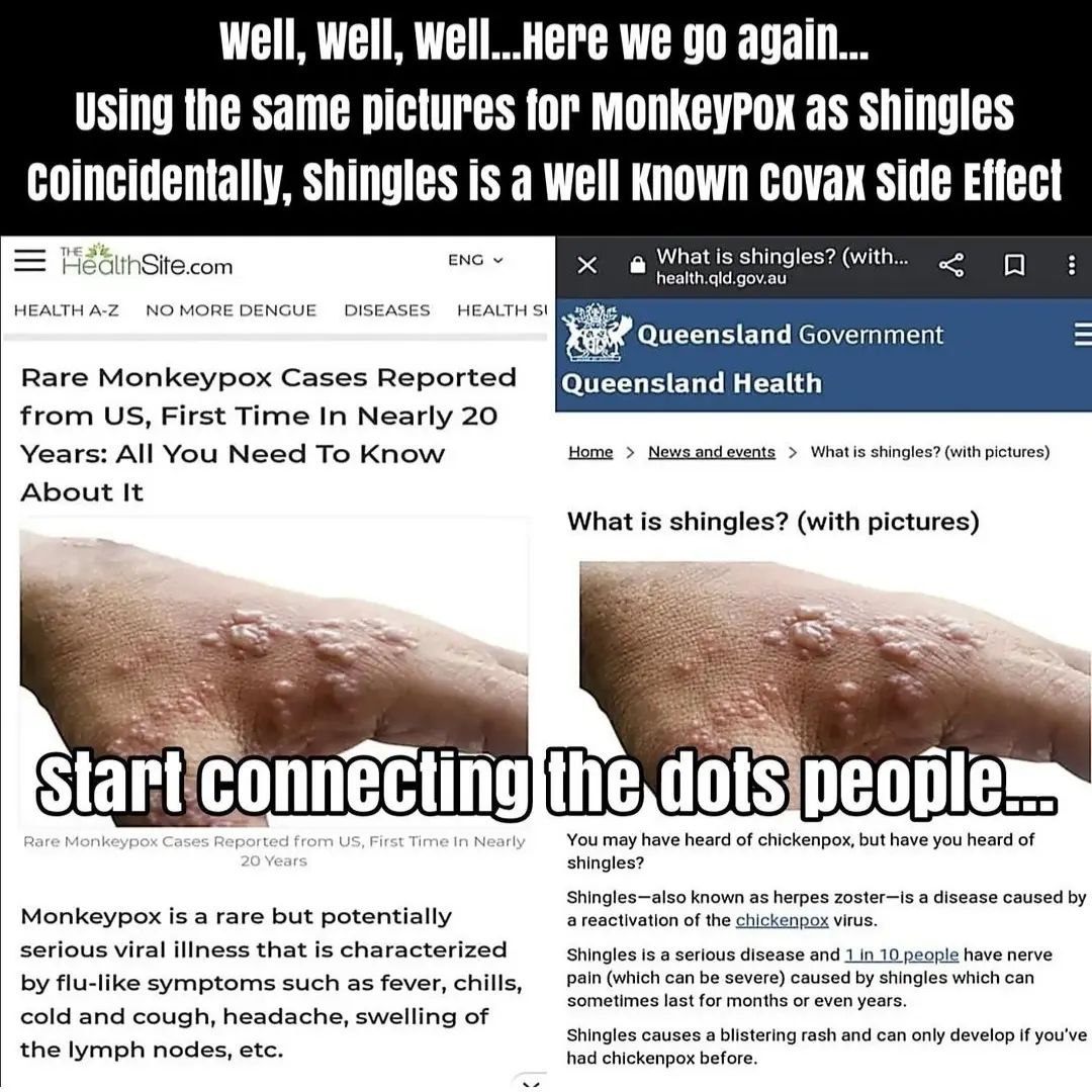 This photo is from the Times with the headline 97 year old women dies of Chickenpox. It’s my opinion that as the vaccine destroys the immune system the latent Chickenpox virus which is in most of us is reactivating causing Shingles and Chickenpox. What test are they using to diagnose Monkeypox?