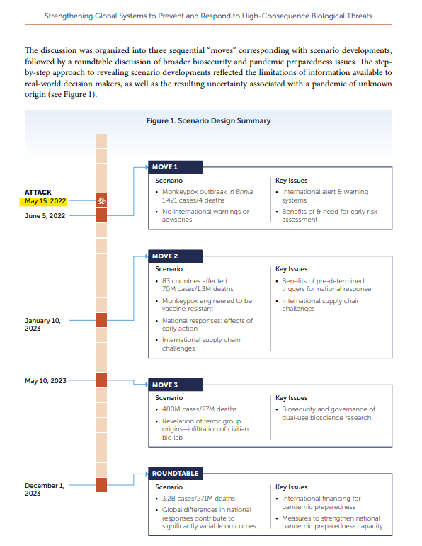 Stop Press: Michael Senger has noted the bizarre coincidence that the first ever global monkeypox outbreak has happened in the exact week predicted in a biosecurity simulation last year (see below), not unlike how the COVID-19 outbreak began shortly after a coronavirus pandemic simulation, Event 201. I’m no conspiracy theorist, but that is quite the coincidence.