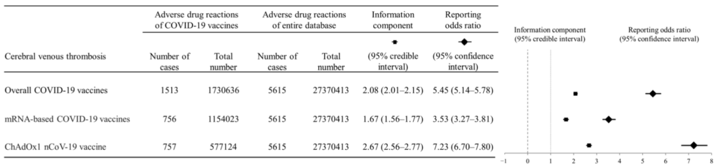 The research team analysed 1,154,023 adverse event reports from more than 130 countries logged with VigiBase, the World Health Organisation’s global deduplicated database, and found a “potential safety signal for CVT occurrence after COVID-19 mRNA vaccination”.