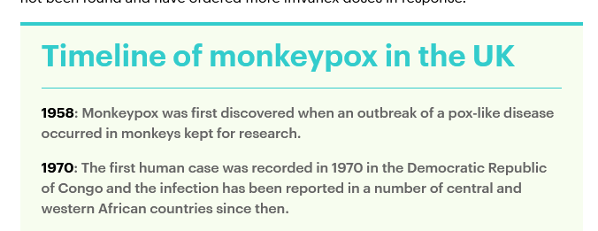 More Monkeypox news. Attached is a screen shot of the “timeline” related to this infection.