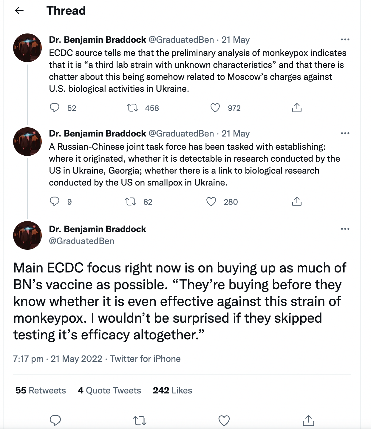 Wonder if Monkeybollocks is the “next pandemic” Gatesy has been banging on about. I assumed he’d at least wait until the next flu season. Well it’s certainly already at pandemic proportions on the internet! https://www.reddit.com/r/WayOfTheBern/comments/uv13bv/i_cant_believe_its_monkeypox_season_already_i/