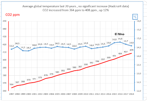 NASA satellite and balloon data inform us there has been no meaningful warming for, at the very least, the last seven years whilst CO2 has continued to rise without interruption.