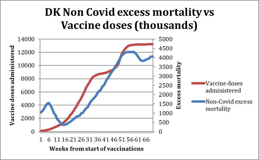 Now, analysis of non-Covid death data from Denmark adds further support for this estimate, showing increases in non-Covid excess mortality associated with vaccination campaigns at a similar level.
