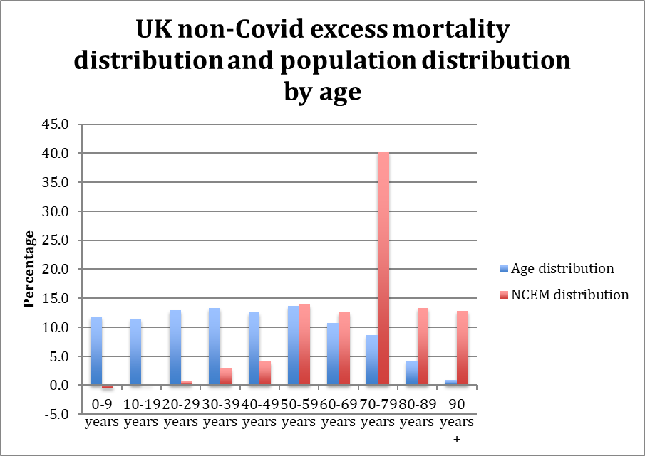 Following on from my recent article, which examined the correlation between cumulative vaccine doses and cumulative non-Covid excess mortality (NCEM), I further examined the age distribution of those fatalities.