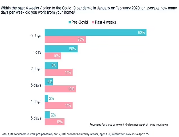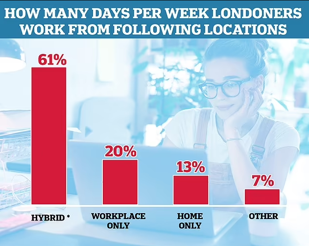 Only 20% of Londoners are currently in the office full time, with 13% WFH entirely.
