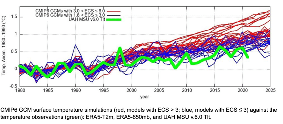 Of course, Schmidt is keen to support surface temperature databases, but he is also keen to promote the record of climate models. Writing in the Spectator last year, he noted that some might be wary of basing decision on models, especially given the problems in forecasting the Covid pandemic. But it was important to realise that most outcomes depend on the overall trend, he said, and not on the “fine details of any given model”. He went on to argue that the track record of models going back to the 1970s “shows they have skilfully predicted the trends of the past decades”.