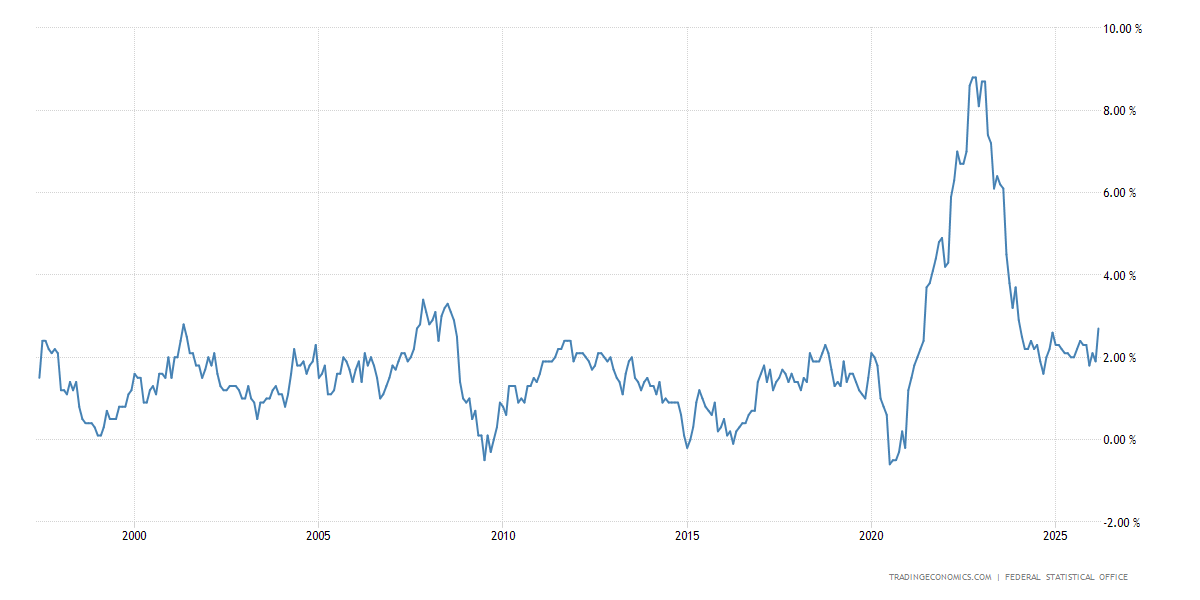 You have to see the numbers plotted to fully appreciate what’s happening. Here’s Germany’s inflation rate over the last 25 years: