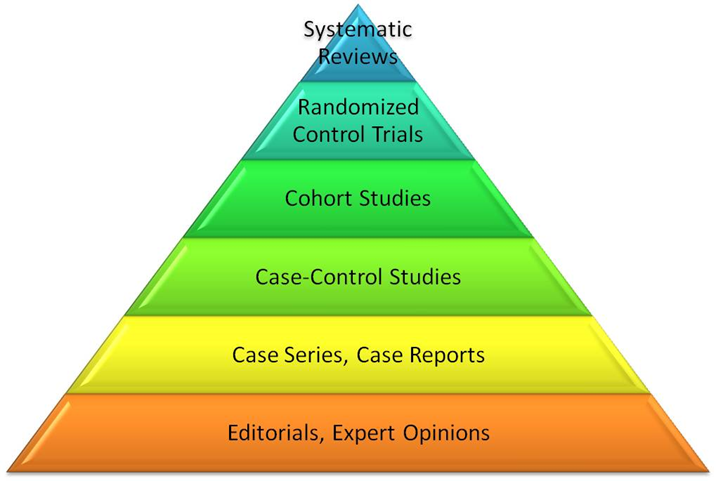 Anecdotal evidence is treated as low grade evidence at level five or six in the evidence pyramid after Sackett (see below); however, that does not mean it is worthless or should be lightly dismissed without investigation to see if it is corroborated by scientific observation.