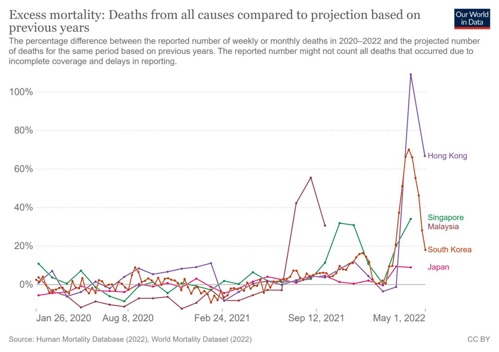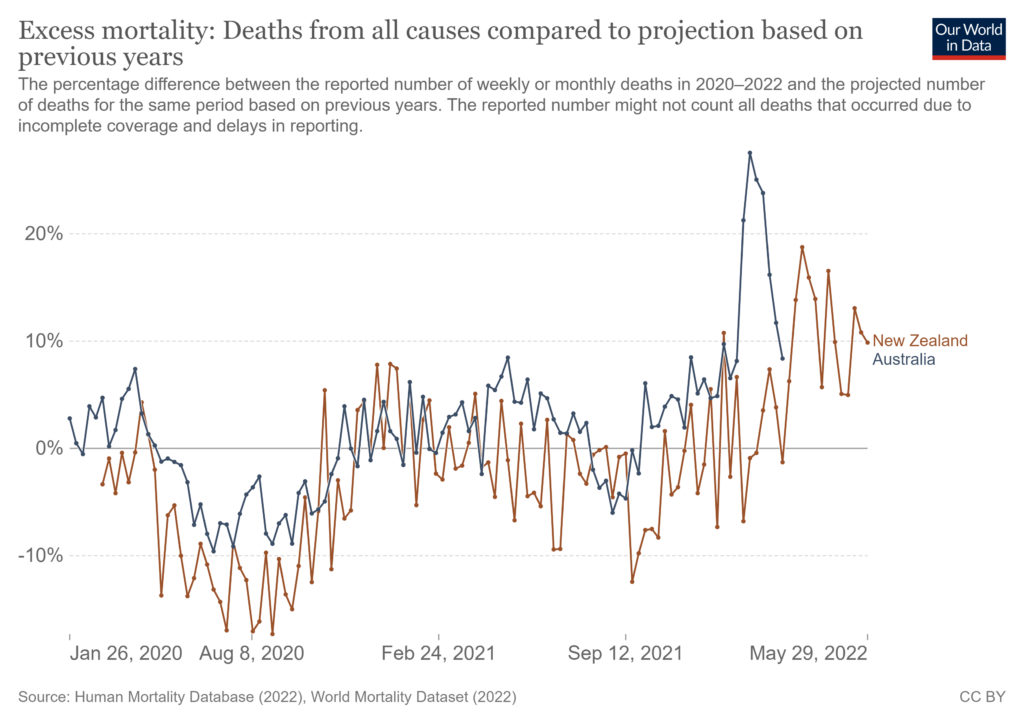 Former Zero Covid fortresses Australia and New Zealand have also not found that vaccination and the mildness of Omicron have prevented a considerable wave of excess deaths during the Omicron waves.