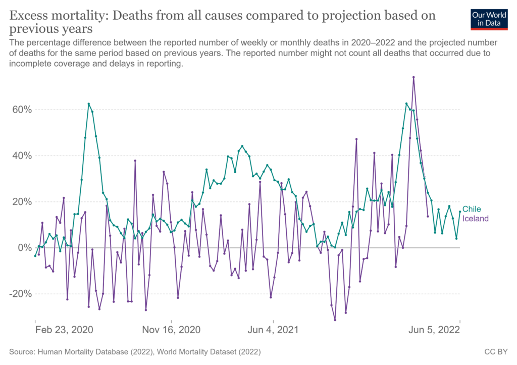 But take a look at their excess deaths. Iceland and Chile hit new peaks during Omicron in 2022.