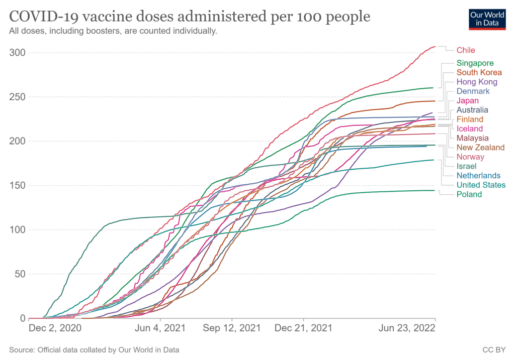 Many countries – including Israel, the U.S., Norway, Denmark, Finland, Netherlands, Iceland, Australia, New Zealand, Hong Kong, Singapore, Malaysia, South Korea, Japan and Chile – have seen large and even record excess death peaks during Covid waves since the vaccine rollout.