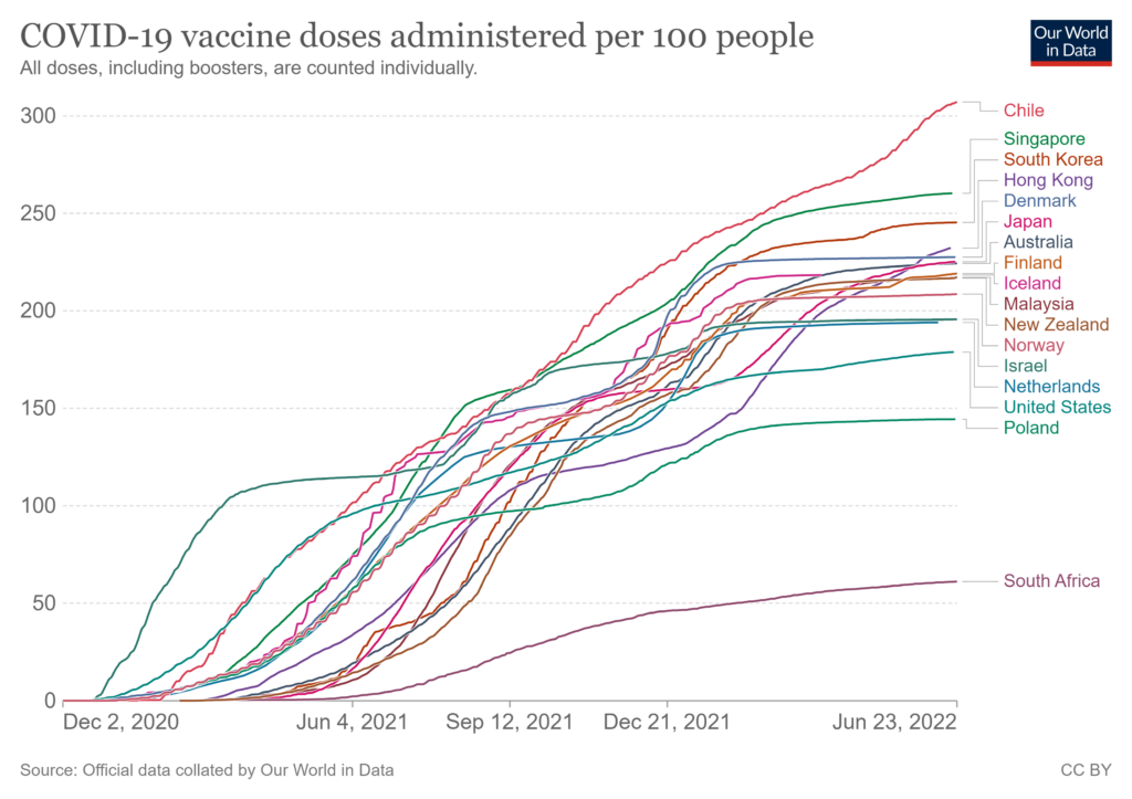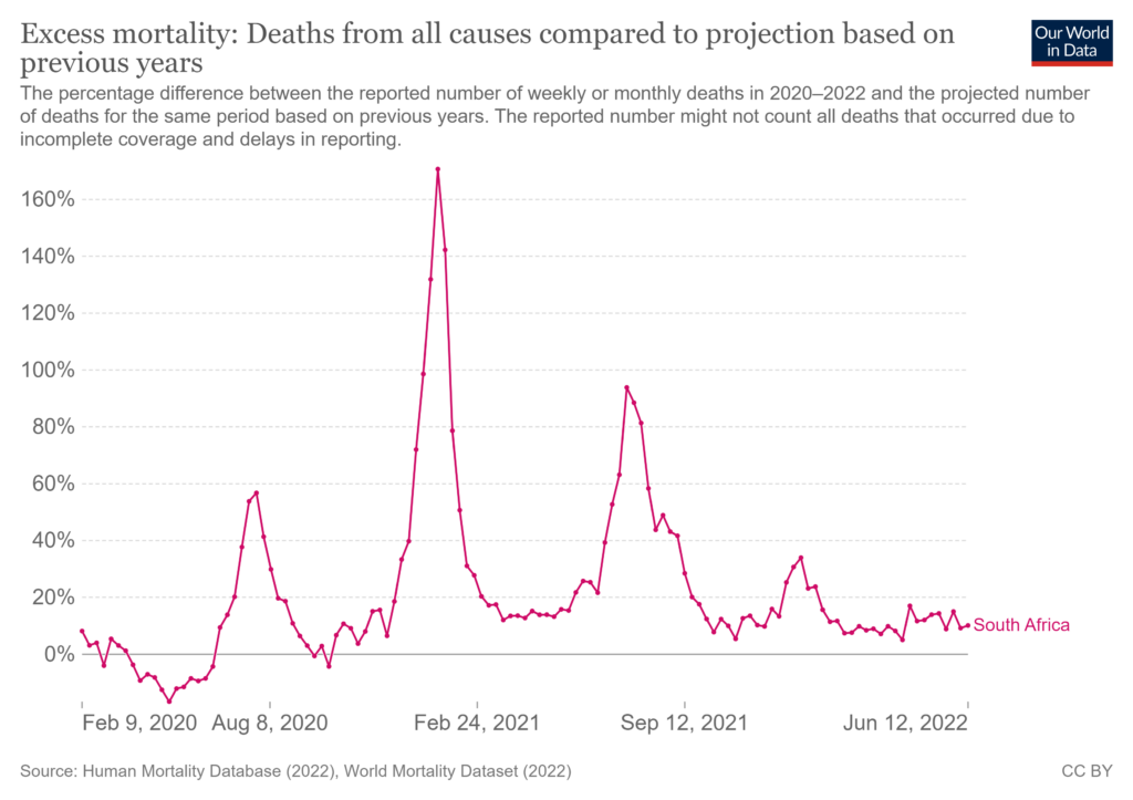 South Africa, on the other hand, has not fared significantly worse despite having far lower vaccination rates.