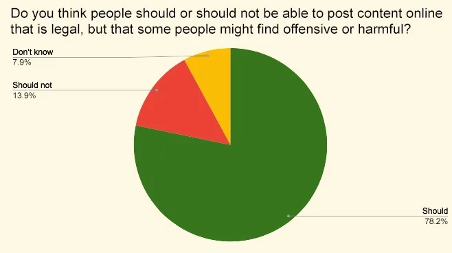 The poll of 982 Tory Party members, conducted by YouGov on behalf of the Legal to Say, Legal to Type campaign, is crystal clear that the government is utterly barking up the wrong tree here. When asked “Do you think people should or should not be able to post content online that is legal, but that some people might find offensive or harmful?”, as the OHB aims to prevent, 79% of members said people should be able to do so.