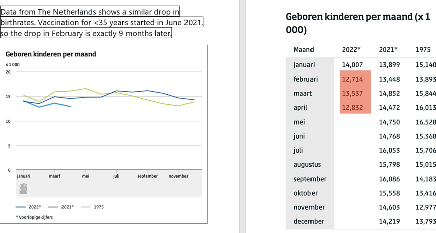The data over the next few months will show that either there is no connection at all to the vaccination campaigns of 2021 or there is an effect which ebbs as we distance ourselves from those campaigns. In the latter scenario there is a question as to whether it is an adverse effect of the vaccine (which may manifest as increased miscarriages and stillbirths, or as reduced fertility) or whether it is due to behaviour change as women avoid becoming pregnant in the period leading up to and following vaccination. In the worst case scenario we will witness a continuing fall in live births due to a significant reduction in overall fertility.