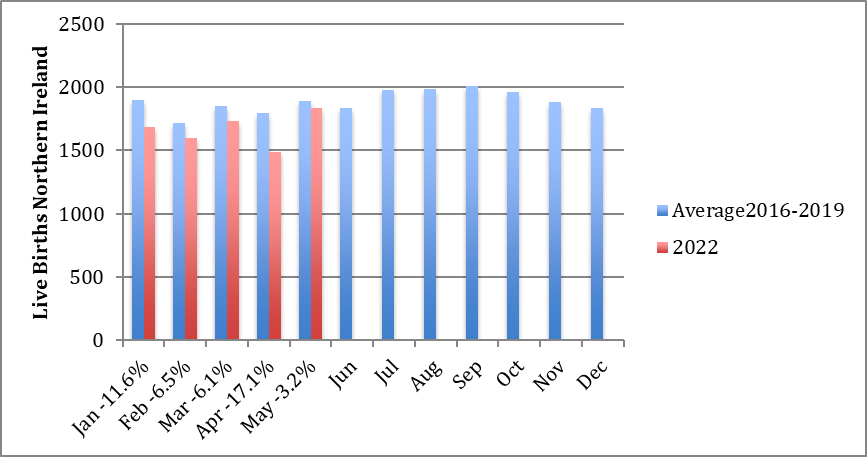 The live birth hard data we have for Northern Ireland are currently only for the first three months of 2022, and those three months correspond to a situation where over 90% of women giving birth were unvaccinated at conception.