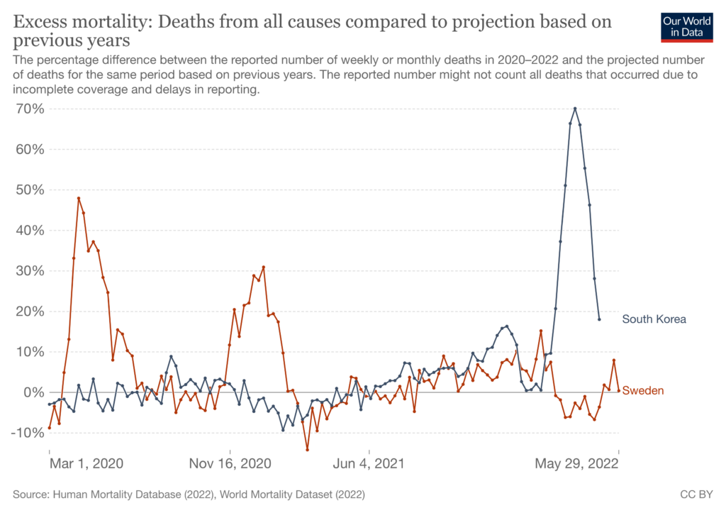 South Korea, Poster Child for Containment Strategy, Now Has Same Excess Mortality as Sweden