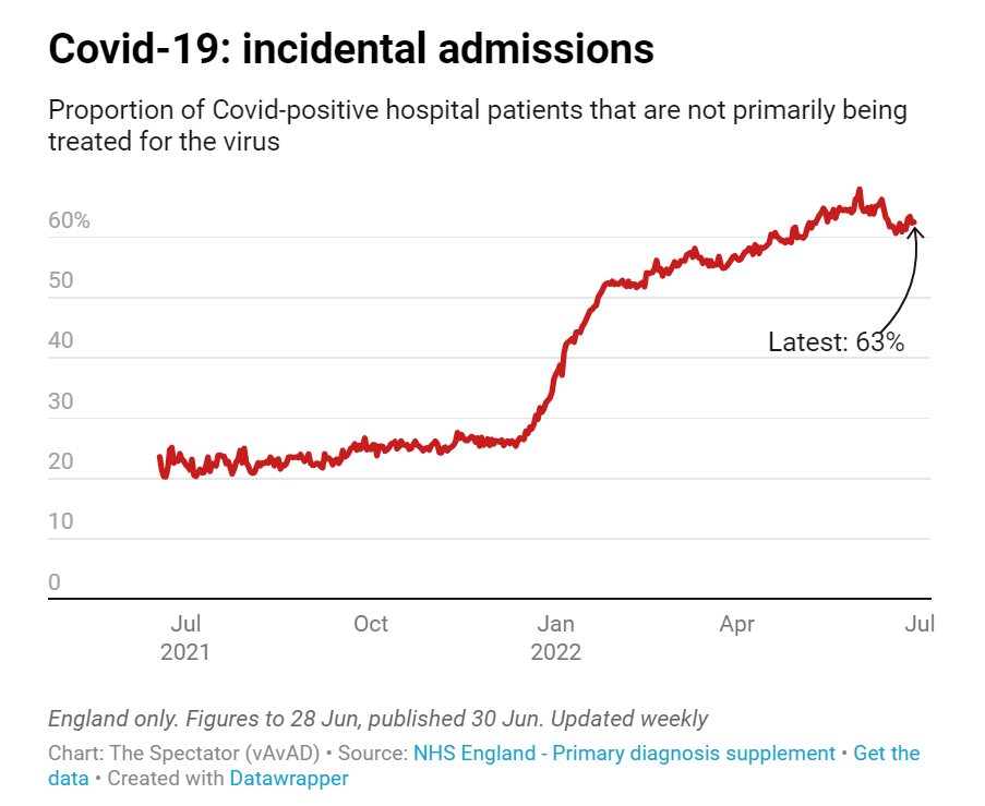 However, only around a third of these are primarily being treated for the virus – the other two thirds are incidental admissions, being treated primarily for something else.