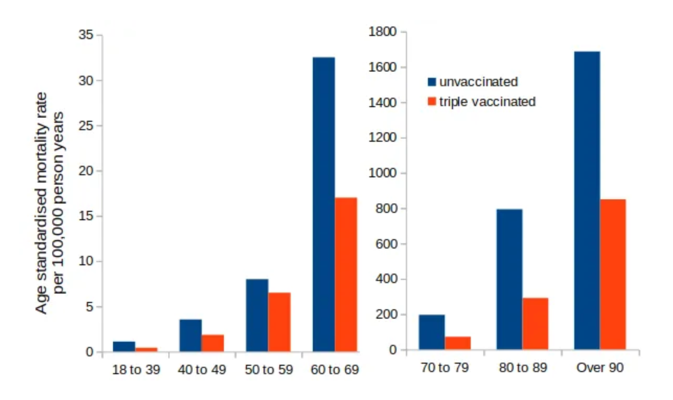 The actual data from the ONS suggest that there are more deaths with Covid in the unvaccinated than in the triple-vaccinated for May 2022: