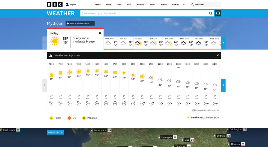 Today is supposed to be even hotter, hitting 43°C in some areas – though last night’s forecasts have this morning already been revised down to 41° – before the cooler weather rolls in by Wednesday (gone so soon? Not so much a heatwave as a heat waft). So will it live up to the hype today before the ever-fleeting British summer melts away into the drizzle once again?