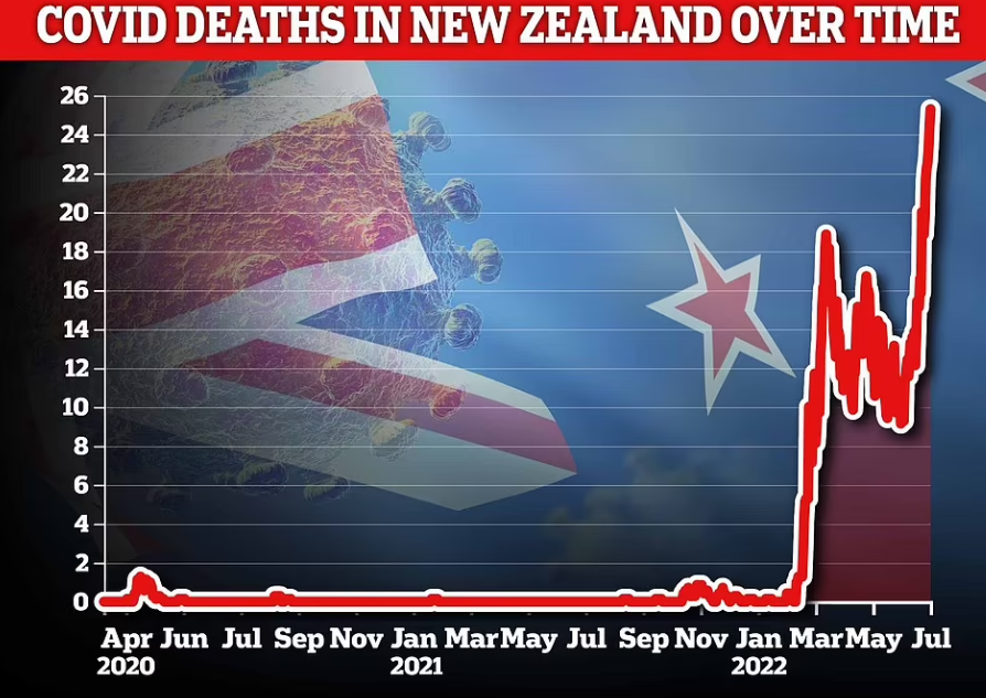 Covid death rates have reached record highs in New Zealand as the country faces a new Omicron wave, despite high levels of vaccination. MailOnline has the story.