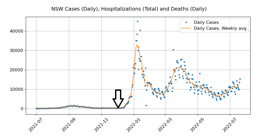 The attached plot shows the case load in NSW up until the present. The black arrow indicates when mask mandates were lifted.