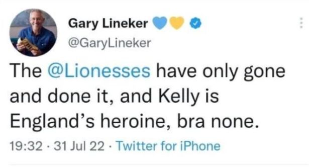 The pun backfired and Lineker, 61, faced an immediate backlash on Twitter, not least from people who hadn’t seen how Kelly marked the historic goal.