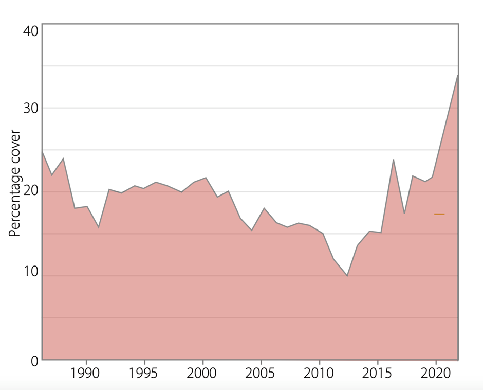 Ridd concludes that by no longer publishing an average figure for the entire reef, AIMS “has obscured the good news for 2022, and drawn a veil over their inaccurate prediction of a decade ago”.