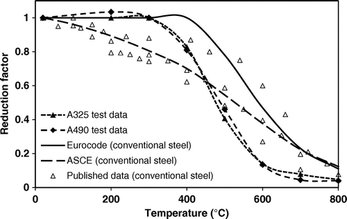 I attach a graph showing the effect of temperature on the mechanical properties of steel. From it you can see that even at just 800degC the residual strength is only about 10% of the room temperature value.