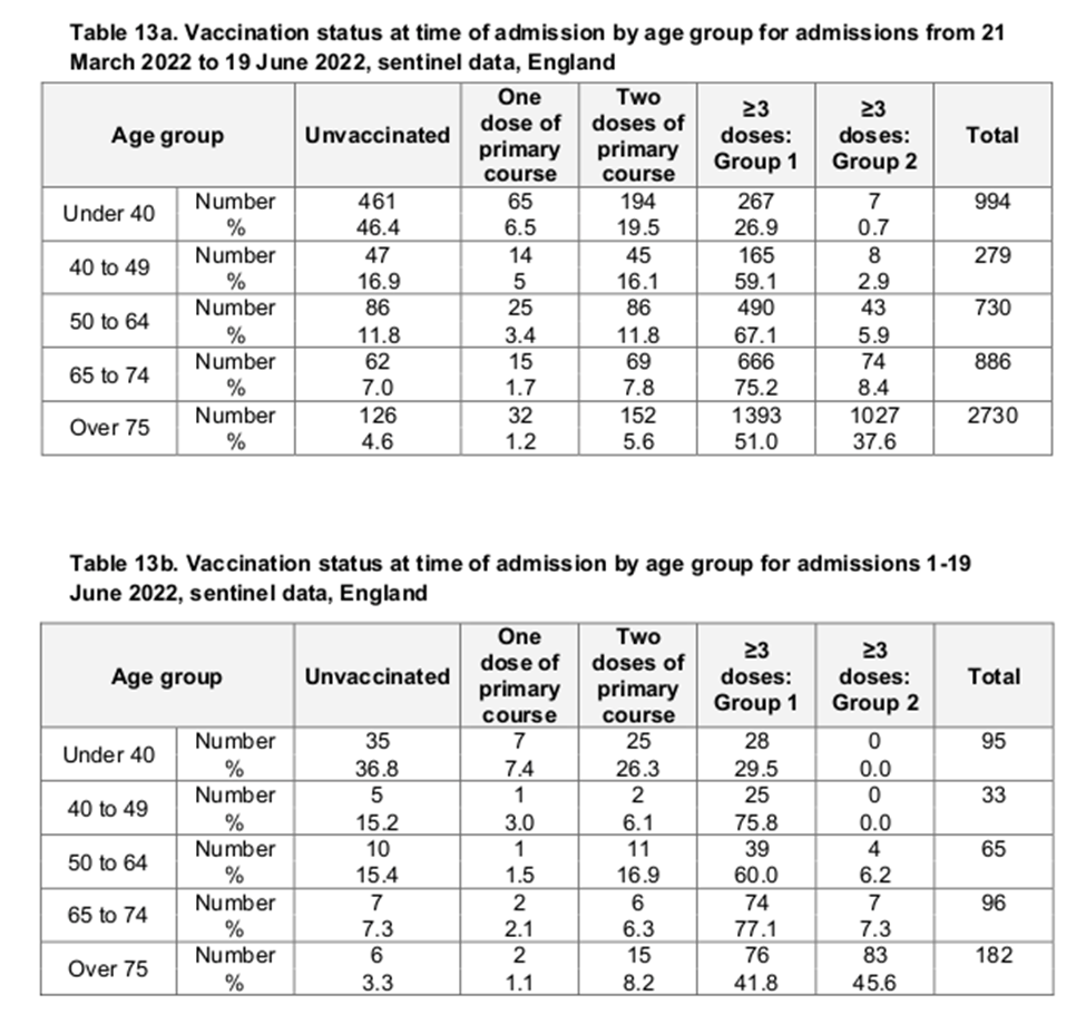 The data for Table 13b in the UKHSA Vaccine Surveillance Report shows a similar trend, albeit with a bit more statistical variability due to the low numbers.
