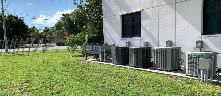 The above photo was taken at Fort Pierce in Florida and shows a digital measuring devise (MMTS) sited next to a large building and five air conditioning units pumping out hot air. Watts, a meteorologist by profession, notes that digital devices are often placed next to buildings since installing a cable to a reading devise is more difficult when roads and paths have to be crossed.