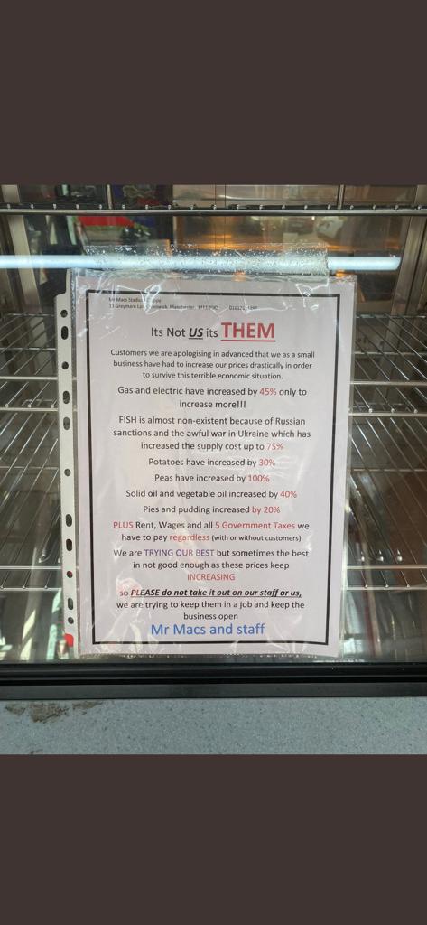 A photo of a sign in a Chippy in Moston, Manchester today.