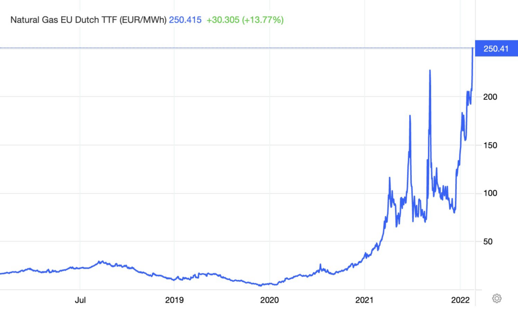 Energy prices in Europe are soaring to record levels – a consequence of both poor planning and sanctions against Russia.