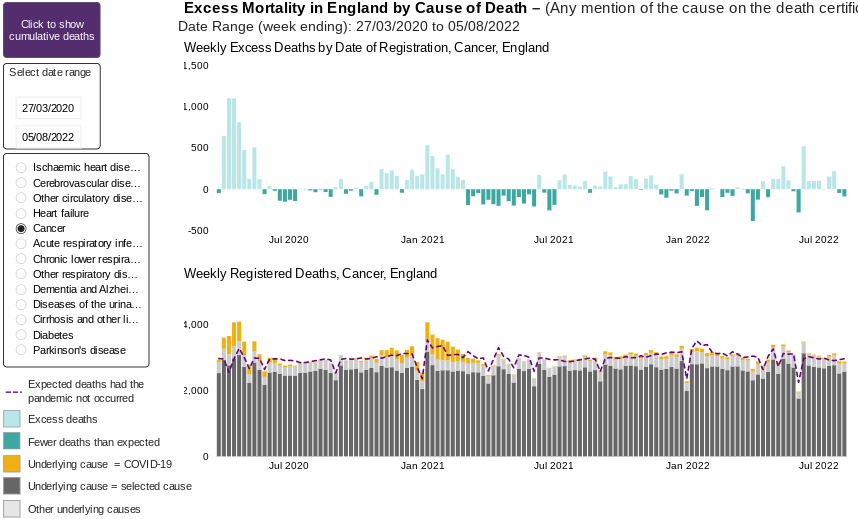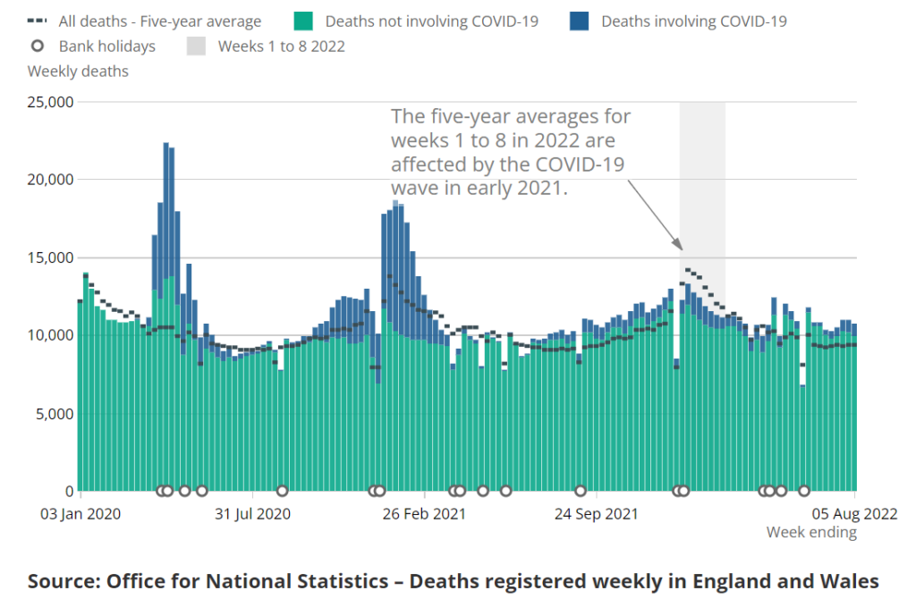 The high number of U.K. excess deaths since April has finally made it into the mainstream media, courtesy of the Telegraph and Professor Carl Heneghan. According to the ONS, as of August 5th 2022 there have been 13,398 excess non-Covid deaths registered in England and Wales since April 23rd. The Telegraph reports that the Government is now looking into what is behind this alarming wave of unexplained deaths, which is about time, having previously said it would not. Does it only matter when the Telegraph says it?