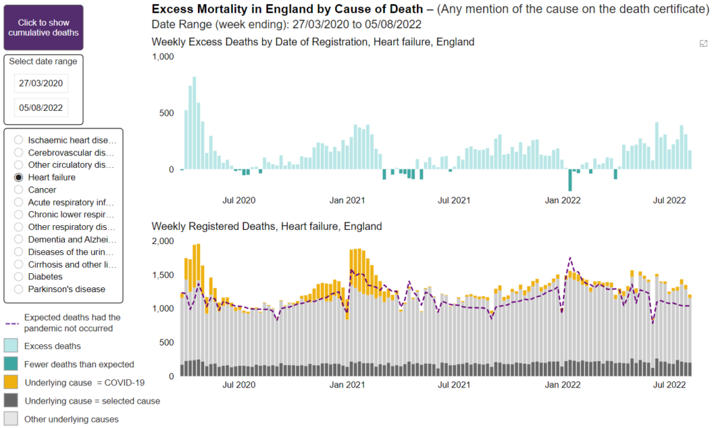 Following a welcome intervention from Oxford’s Professor Carl Heneghan, the Government has now said it is looking into what lies behind the unusual level of deaths. However, the vaccines have not as yet been mentioned as a possible contributory factor, despite the deaths being largely cardiovascular in nature and the vaccines having known adverse effects on the heart and circulatory system. It is hard to see how the vaccines can be ruled out without proper investigation of the person-specific data by vaccination status as well as autopsies conducted with the possibility of vaccine injury in mind.