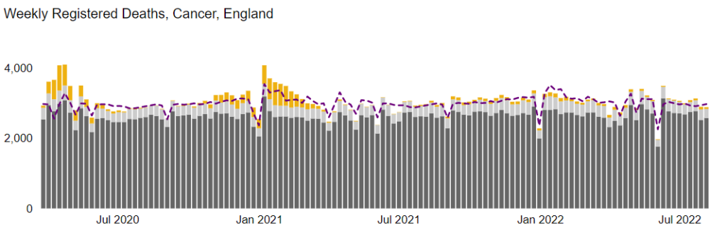 The fact that cancer deaths are not above average counts against the suggestion that the main cause of the deaths is denial of healthcare access during the pandemic.