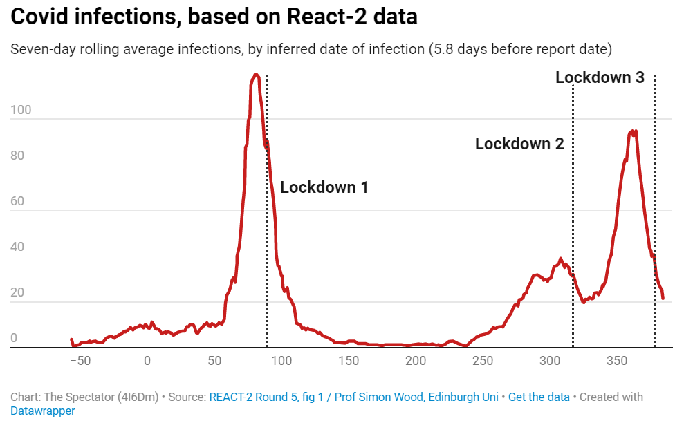“Data experts” recruited by Dominic Cummings predicted catastrophe and the Government went into panic mode. Interestingly the reasons Lee Cain gave for the initial lockdown could not possibly serve to justify subsequent lockdowns. He reveals in this article his ignorance and gullibility. None of these wild predictions of doom were ever going to come to pass. I could almost forgive a 3 week lockdown just to be on the safe side but it became this magic formula for keeping the plague at bay. Except that it wasn’t doing that. All of these so called experts and their fawning acolytes immersed themselves in flawed models based essentially on (poor) guesswork and as a result they could not see the wood from the trees.