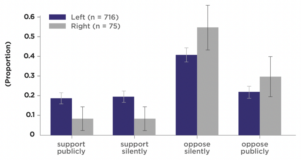 Almost 20% of left-wing academics said they’d support the petition publicly, with another 20% saying they’d do so privately. What’s more remarkable, though, is that almost 10% of right-wing academics said they’d support the petition publicly – and only 30% would oppose it publicly.