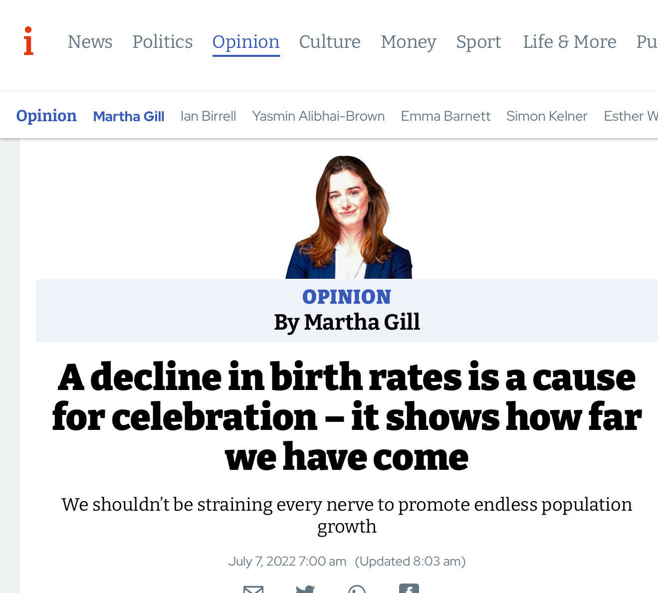 The strapline of the image of the Martha Gill opinion piece about ‘endless population growth’ is particularly worthy of derision. In poor countries, children are your free workers and your pension. Why would people decide to have fewer. If you allow them to develop economically, it permits education to more women and better lives, which naturally depresses population growth as we can see around the world in many examples.